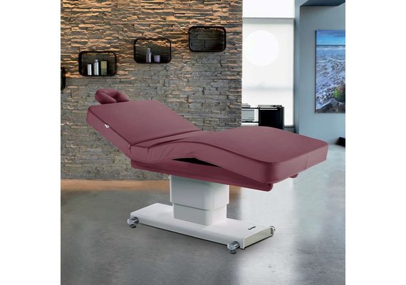 Centrun ist eine vielseitige Lösung für Beauty- und Spa-Umgebungen, die eine perfekte Balance zwischen Funktionalität und Design bietet. Die Matratze mit Hufeisenkopfstütze ruht auf einem eleganten, geschwungenen Holzgestell, das sich durch eine zentrale Säule auszeichnet. Ausgestattet mit drei unabhängigen Verstellmöglichkeiten für Höhe, Rückenlehne und Beinstütze garantiert sie maximalen Komfort für Kunden und Anwender.